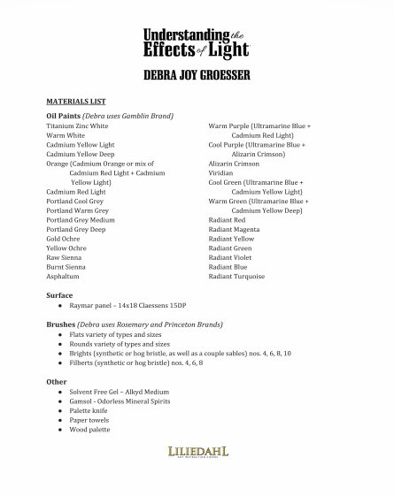 Debra Joy Groesser is sharingall of the painting insights and wisdom she’s learned throughout her journey in Understanding the Effects of Light.